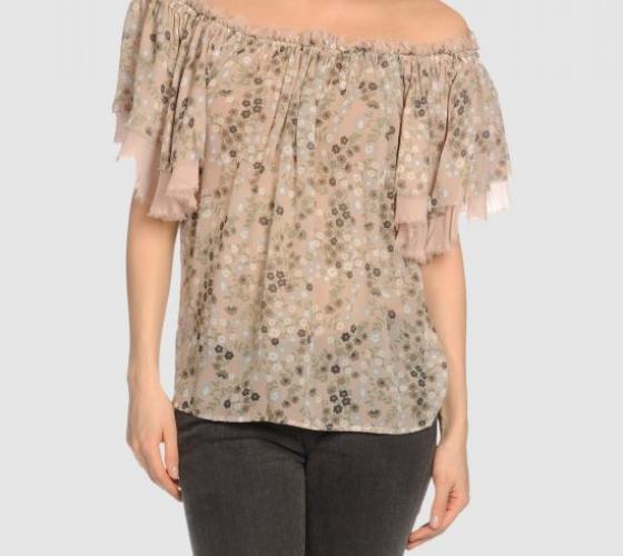 В числе модных и блузки в этническом стиле табачно-пастельной цветовой гаммы. В качестве аксессуаров выбирайте темные деревянные этнические кулоны.