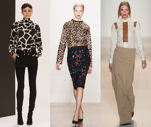 14. Блузки без воротников, с вырезом, будто несколько верхних пуговиц просто не застегнуты. Элегантная и женственная небрежность достигается за счет использования тонких и «скользких» тканей.