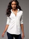 Девушкам с широкими бедрами и маленькой грудью подойдет прозрачная белая блузка и темный низ. Такой вариант поможет сделать фигуру более пропорциональной.