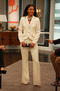 Если ваш костюм выдержан в нейтральном оттенке, позволительно украсить его яркими деталями, создавая по-настоящему вечерний образ. Светлые тона костюмов хороши для летних вечеринок на открытом воздухе. При выборе аксессуаров помните о том, что важно соблюсти баланс, если наряд уже имеет определенное количество дополнительных деталей, возможно, стоит воздержаться от его украшения или остановиться на очень лаконичных аксессуарах. Шаль или шелковый шарф добавят женственности к этому, заимствованному из мужского гардероба, комплекту. Обращайте внимание на классические украшения нейтральных тонов, такие как жемчуг и бриллианты.