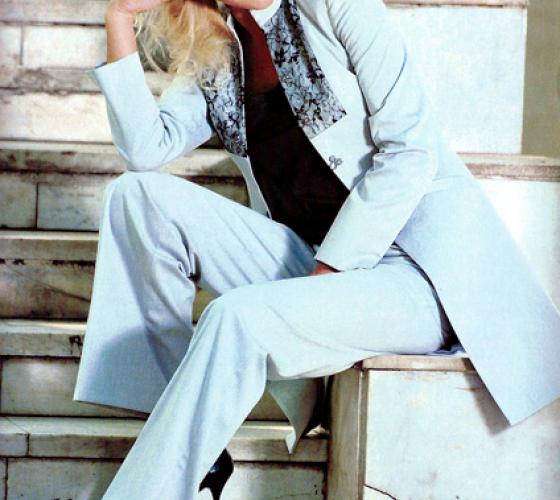 Чтобы все-таки брючный костюм стройнил и был по-настоящему деловым, дизайнеры предложили классические, лаконичные ансамбли брюк с завышенной талией и достаточно длинные пиджаки. Присутствует в них лишь один скромный аксессуар – тоненький пояс.