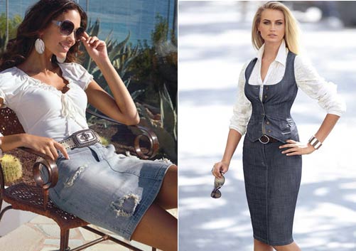 Не секрет, что в последнее время мода дышит к дениму пылкой страстью. Джинсовые куртки и рубашки прочно обосновались в гардеробах настоящих модниц, аксессуарами из денима завалены прилавки модных магазинов. Не оставлены без внимания и джинсовые юбки, которые обрели буквально второе дыхание и в этом сезоне обещают стать горячей новинкой номер один.