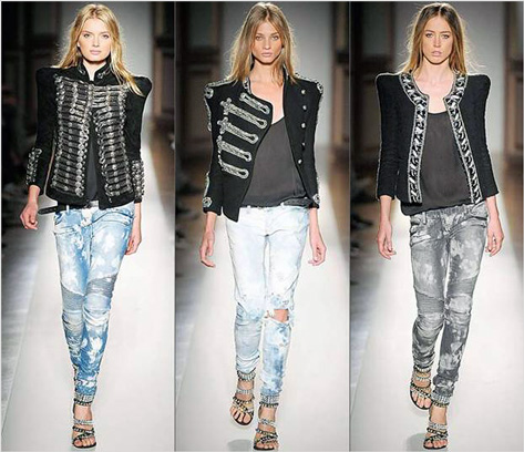 В 2011 будут модные джинсы для девушек разных цветов: голубые, серые, черные, коричневые, кирпичные. Пожалуй, всё-таки самыми остромодными будут светло-голубые и белые модели. Стиль «грандж» снова во всем своем великолепии возвращается на подиумы, да и в нашу жизнь. На пике популярности модные джинсы 2011, имеющие разнообразные потертости, дырки и прорези, крупные карманы, отвороты. При этом «дырочки» и прорези могут быть и очень скромными, и более агрессивными. Именно поэтому не стоит торопиться выбрасывать протертые старые джинсы. Однако во всем должна быть мера. Например, если вы выбираете такие модные в этом сезоне узкие «варенки», то не следует перегружать их большим количеством ультрамодных дополнений в виде прорезей и заплат – такие джинсы являются достаточно яркими сами по себе.