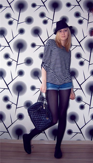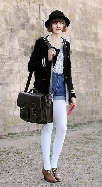 Джинсовые шорты с колготками: