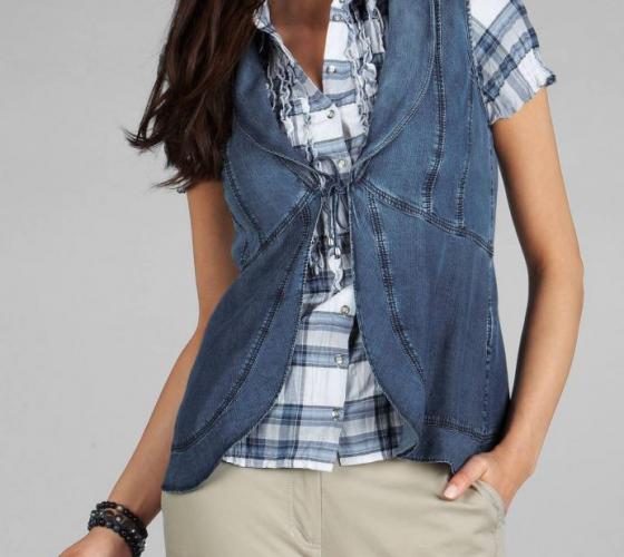 В сезоне осень-зима 2011-2012 модным трендом будут джинсовые жилетки. Джинсовая жилетка - это часть гардероба, с помощью которой вы можете создать стильный и необычный образ. Она прекрасно подойдет для прогулки теплым осенним вечером в сочетании с футболкой или легким платьем.