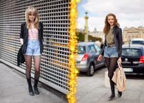 Для уличного стиля хорошо подходят джинсовые шорты, одеты поверх колготок - черных, в сеточку или цветных.