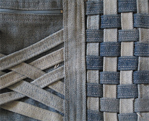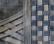 - разное количество отличающихся по форме и цвету джинсовых лоскутов