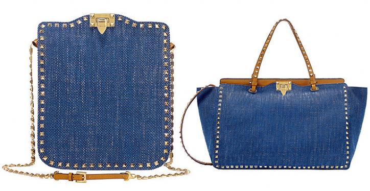 Модные журналисты частенько напоминают о том, что джинсовая сумка – это такой «законченный» casual look, что и форма выбирается громоздкая. Весенне-летняя коллекция сумочек Valentino легко опровергнет это убеждение: для аксессуаров нет ограничения не только по форме (трапеция, paper bag), но и по размерам. Джинсовый клатч с отделкой золотыми заклепками и длинной ручкой из светло-коричневой кожи – это настоящая находка. Единый формат отделки позволяет сформировать свой золотой запас сумок из денима, на все случаи озорного и веселого лета.