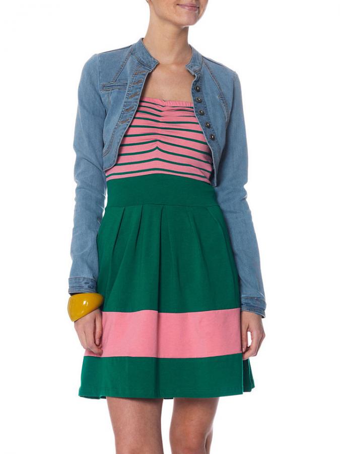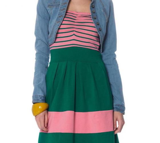 Курточки из джинсовой ткани хорошо смотрятся с летними платьями из легких тканей. Длина такого платья может быть до колен или ниже, расцветка тоже разнообразная.