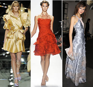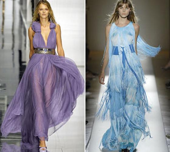 Вновь популярны орнаменты и узоры, как традиционные, так и уходящие далеко в древность, ведь женщина это предмет искусства. Актуальны длинные декольтированные платья с вырезом-лодочкой, или буквой V. Из более тяжелых тканей (бархата или шелка), дизайнеры рекомендуют простой лаконичный крой, без каких-либо излишеств. А тонкую ткань с крупным набивным узором, советуют прятать под несколькими слоями тончайшей ткани, при этом создавая эффект воздушности и приглушая тона орнамента. Такие «Воздушные» платья отлично смотрятся с корсетом или широкими поясами.