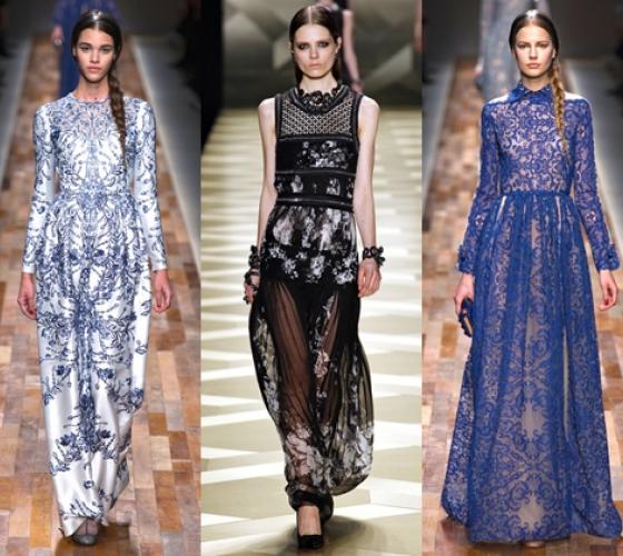 Модные длинные платья осеннее-зимнего сезона скрывают шею, а во многих вариантах – даже руки. Пусть мужчины гадают, какая красота скрывается за нежными тканями. Интригуют минимальные вставки из прозрачных тканей. Если Temperley London предпочитают классическое черно-белые варианты длинных платьев, то другие дизайнеры стараются также экспериментировать с цветом.