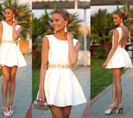 Отличным вариантом может стать короткое платье с пышной юбкой. С таким нарядом лучше всего будут смотреться туфельки на шпильке. Пара аксессуаров – изящный ремень и клатч станут прекрасным дополнением образа.