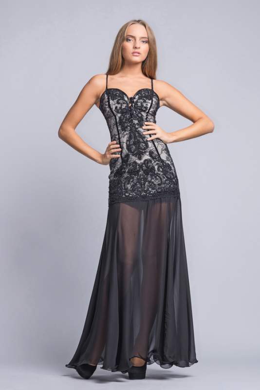 Если ваш выбор остановился на прозрачном платье — то к выбору белья нужно подойти со всей ответственностью. Белье обязательно должно гармонировать по цвету с платьем. И абсолютно неважно, по какому принципу будет эта гармония — по принципу контрастности или же совпадения цвета. Но зато, если вы любительница кружев, бантиков и прочих декораций, — здесь вы можете проявить себя во всей красе. Утягивающее корректирующее белье здесь абсолютно не уместно. Правильно подобранное нижнее белье поможет вам подчеркнуть не только красоту вашего наряда, но и прелести фигуры. Cпрятать немного выпирающий живот или же скрыть небольшие выпуклости поможет корректирующее нижнее белье — утягивающие трусики, грация или колготки. А исправить недостаточный объем можно с помощью бюстгальтера, который имеет силиконовые вставки. Грудь при этом будет выглядеть абсолютно естественно и соблазнительно к большой радости ее обладательницы.