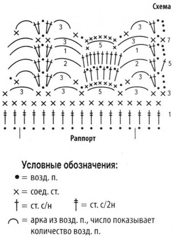 Сборка: сшейте плечевые швы. Обвяжите вырез горловины и проймы рукавов с 1 -го по 3-й ряды схемы основного узора.