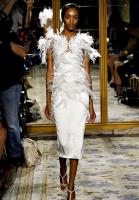 Но истинную классику, в которой, как говорится, и в пир, и в мир, можно увидеть, конечно же, у Valentino. Легкие ткани, которые и хорошо драпируются, и держат форму; полупрозрачное кружево с мелким цветочным рисунком; тонкие бретели традиционных коктейльных платьев; прямые силуэты без излишеств в виде оборок или защипов, призванных увеличить объем… Все очень достойно, свежо и ярко, несмотря на ослепительную белизну тканей.