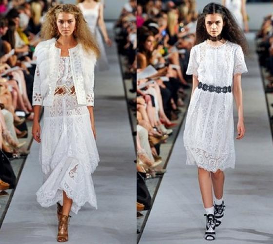 Коллекция последнего бренда вообще является практически полностью белоснежной. Свои платья дизайнеры Ralph Lauren дополнили широкими кожаными ремнями с крупными металлическими застежками.