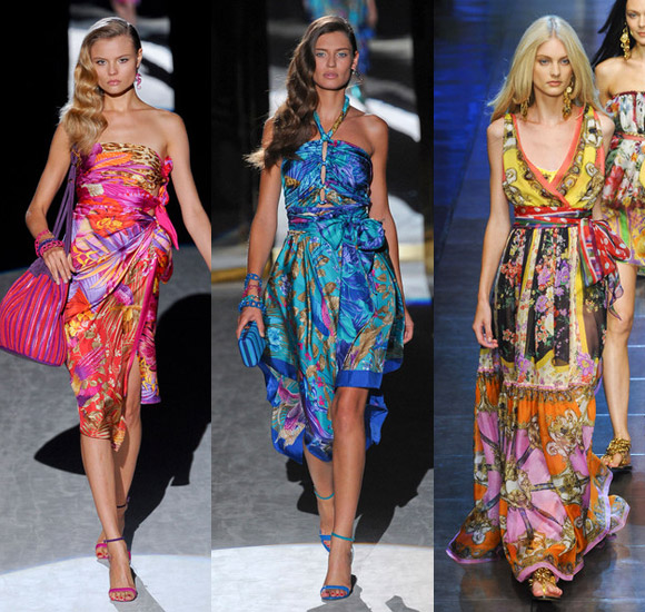 Модным трендом станут пляжные платья как будто скроенные или собранные из платков.