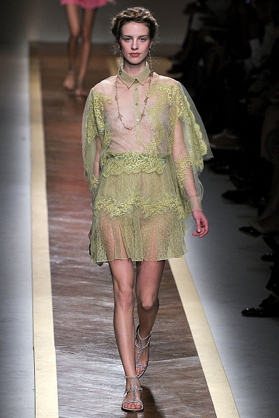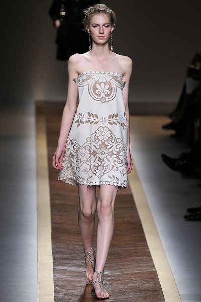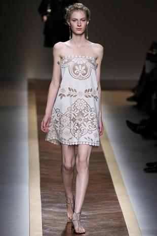 Короткие вечерние платья 2012: Valentino. Основа коллекции – прозрачные вставки, открытые плечи и пастельные тона. Тонкое кружево создает ощущение необычайной легкости и изящества.