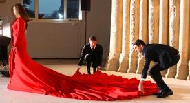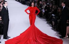 Французский дизайнер Стефан Ролланд удостоил такой чести бывшую модель Ясмин Ле Бон на проходящей в Париже неделе высокой моды. В завершении показа его коллекции было представлено красное платье, созданное из шелкового джерси длиной 45 метров.