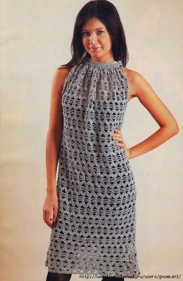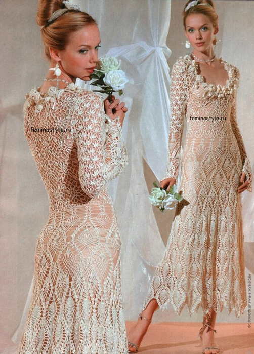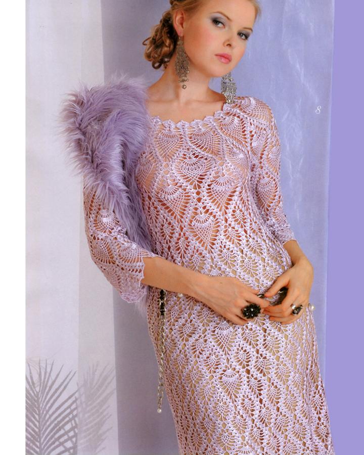 Элегантное и женственное платье с узором «ананас» (можно увеличить) выполнено крючком