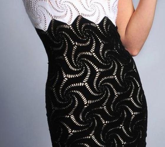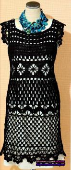 Вот уже на протяжении нескольких модных сезонов многие дизайнеры представляют в своих коллекциях различную вязаную одежду. В частности производитель модной итальянской одежды Mariella Burani в одном из последних показов представил на подиуме удивительно элегантное, романтическое и женственное вязаное платье крючком. Черное ажурное платье из вискозной пряжи на белом чехле настолько запало в душу многим женщинам, что я решила рассказать вам, как связать его самостоятельно в домашних условиях. Работа конечно долгая и кропотливая, но результат обязательно порадует вас и в вашем гардеробе появится еще одно стильное нарядное платье.