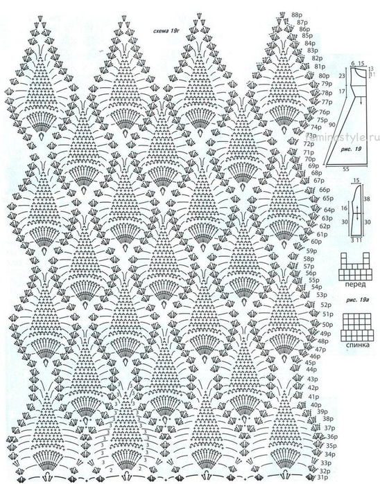 Перед началом вязания крючком платья, выполните выкройку верхней части изделия по рис.19 и откорректируйте по своим меркам.