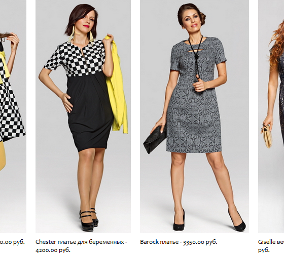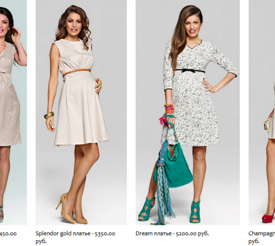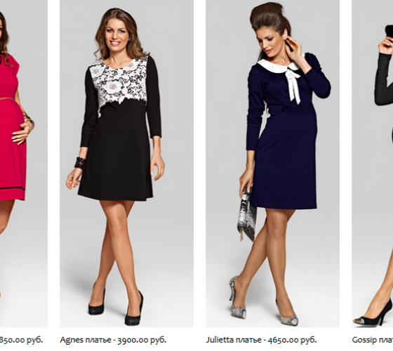 Разработанная опытными дизайнерами и модельерами одежда для беременных представлена в самом широком ассортименте, включая домашние, деловые, спортивные и вечерние комплекты и платья, а также нижнее белье.
