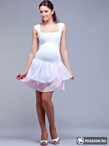 Такие платья, выполненные из воздушных, легких, невесомых тканей, подчеркивают в вас женственность, мягкость, хрупкость. Фигура выглядит пропорционально, а на груди и животике сделан красивый акцент.