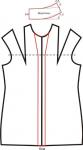 На передней половинке платья на юбке выполнить расклешение как показано на выкройке платья1. Чем больше вы дадите в расклешение, те более пышная юбка будет книзу.