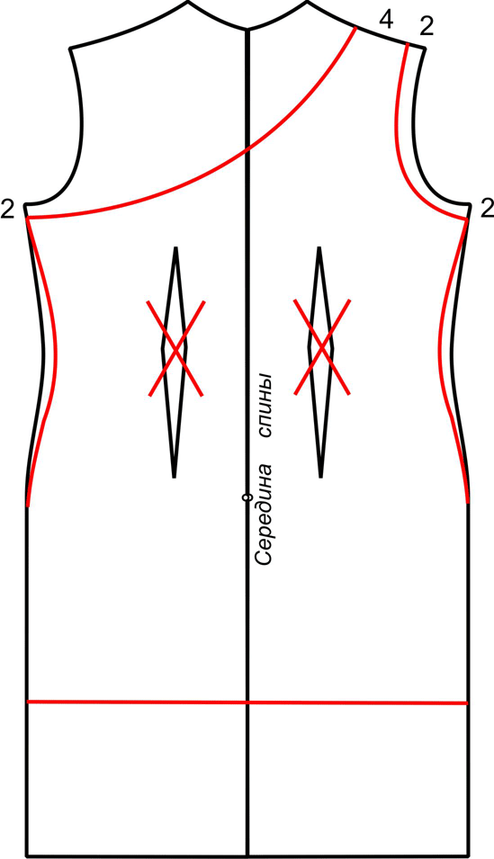Спинку платья смоделировать как показано на выкройке платья 4.