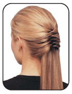 Расположите заколку по направлению основною пряди, то есть вертикально вниз. Верхняя секция заколки почти скроется под волосами. С стороны петель, возьмите следующую тонкую прядь волос и накиньте ее на следующую секцию заколки. Помните: Всегда берите волосы от стороны петель и всегда располагайте волосы равномерно по всему уровню заколки, чтобы скрыть зубец секции, таким образом все секции заколки будут скрыты под волосами.