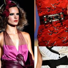 Пояс оби 2011 года Модный бренд Carolina Herrera использовал темные цвета на фоне нейтральных оттенков. Японские оби в исполнении этой торговой марки были также подчеркнуты графическими изображениями и пряжками. |