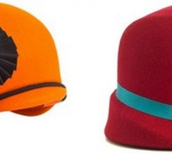 Коллекцию отличают яркие насыщенные цвета – дань поп-арту 1960-х. Попробуйте остаться незамеченной в шляпке ягодного цвета с неоново-оранжевым козырьком.