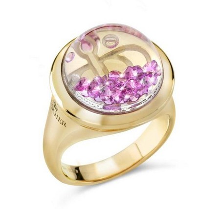 Самым притягательным в коллекции, на мой взгляд, является не столько чистота камней и их стоимость, сколько нетривиальный дизайн. Небольшие бриллианты в компании прочих драгоценных камней плавают в специальном растворе, плавно двигаясь внутри прозрачной сферы при каждом движении.