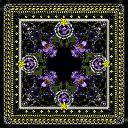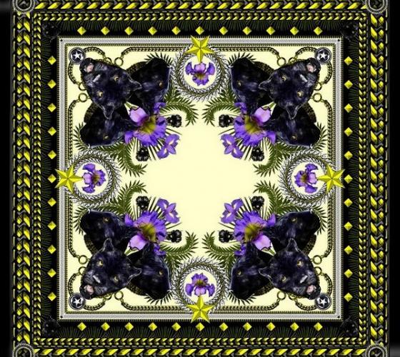 В этом сезоне одними из самых ярких (в прямом смысле) творений модного бренда стали шелковые платки. Вот уж поистине атрибут фокусника или гипнотизера – если долго на них смотреть, можно «потерять прицел», расфокусироваться и заблудиться в узорах. Знаете, не так давно были очень популярны картинки – голограммы, глядя на которые через некоторое время глаза «разъезжаются» и изображение становится объемным. Примерно та же тема – и в этих платках. Они – как большой шелковый калейдоскоп, со множеством повторяющихся, как будто отображенных в множестве зеркал ярко-разноцветных предметов. Очень ярко, контрастно, но не наляписто и не по-цыгански, французы тонко остановились на грани.