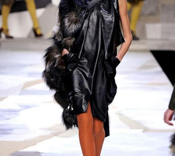 Самую разнообразную цветовую гамму предложили дизайнеры дома Fendi: желтые, красные, бордовые, оранжевые и зеленые колготки «раскрасили» коллекцию одежды, выполненную в сдержанных природных тонах.