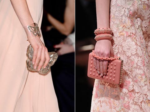 Оригинальностью также отличились Chanel, Valentino и Gucci. Они предложили носить модели из пластика, в форме необычных коробочек. А клатч от Valentino, в форме бабочки, сочетающийся с таким же браслетом, просто неповторим.