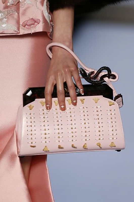 Такой декор использовали для украшения клатчей Giorgio Armani, Ralph Lauren, Fendi, Valentino, Versace, Lanvin.