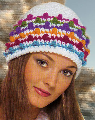 Наряду с вышеупомянутыми моделями, в моде вязаные шапки, украшенные цветными горизонтальными полосками. Предпочтительней выбирать изделия с широкими полосами, цветовая гамма которых не будет слишком контрастной.