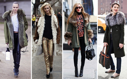 Классический образ – шапка-ушанка из длинного меха, полушубок, джинсы и сапожки, отороченные мехом, а также угги в тон шубке или шапке;