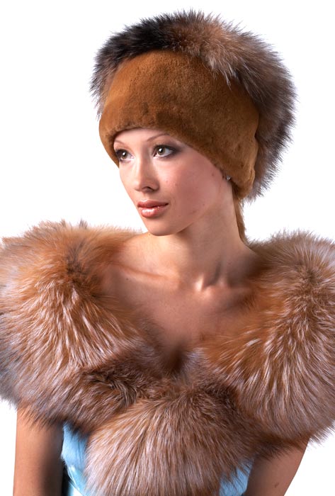 Шапки-ушанки, береты, чалма, носок представлены из цельного песца или в комбинации с кожей, замшей, другими материалами, где окантовка всегда выполнена из песца разных оттенков. Это выгодно подчеркивает и смягчает черты лица.