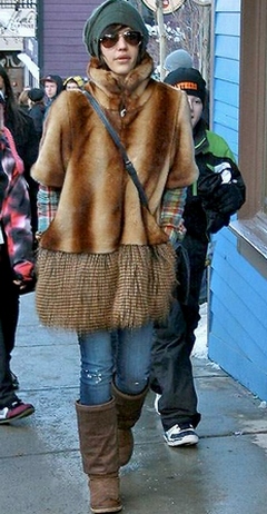 Шубу средней длины (до колена) лучше носить опять-таки с высокими сапогами или ботфортами, кстати говоря, последние особенно актуальны в нынешнем модном сезоне осень-зима 2013-2014. Ботильоны на каблуке украсят ваш образ, а вот короткие сапоги в случае с шубой такой длины могут укоротить ногу.