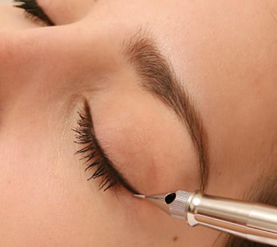 Перманентный макияж глаз. В перманентном макияже глаз (татуаж глаз) существует различие в работе с верхним и нижним веком. Подчеркивание ресничного края верхнего века при татуаже делает глаза более выразительными: ресницы кажутся пушистыми, зрачок — ярче. Такой макияж эффектно смотрится на любом лице, при любом разрезе и форме глаз. Нижнее веко подчеркивают не всегда: часто прорисовка и верхнего, и нижнего века зрительно сужает глаз. Кроме того, подчеркивание нижнего века визуально может опустить уровень глаз, что далеко не всегда является желанным результатом. На нижнем веке расположен только один ряд ресниц. Рядом с корнями ресниц или под ресницами проводится очень тонкая четкая линия, таким образом, зрительно увеличивая глаза. Можно использовать и растушевку: с помощью разбавленной краски делается контур, который выглядит так, будто нарисован косметическим карандашом и напоминает легкую тень под ресницами.Перманентный макияж губ – это процедура, при которой обрабатывается не только контур губ, но и их поверхность.