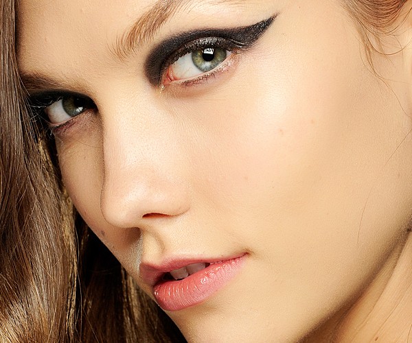 Классические стрелки в ретро-стиле 50-х гг снова в моде в этом сезоне! Можно не сомневаться, что этот макияж будет эффектным и сегодня! Делаем акцент на глаза, но при этом классическое дополнение такого макияжа глаз - призывно алые губы - заменено нейтральным бледно-розовым оттенком.