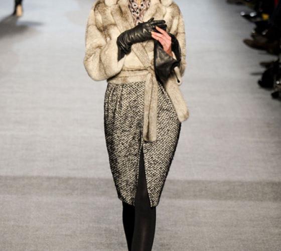 Лейбл Oscar de la Renta продемонстрировал элегантный черный короткий меховой жакет в сочетании с вечерним платьем в пол. Подобный комплект достоин чести показаться на красной ковровой дорожке.