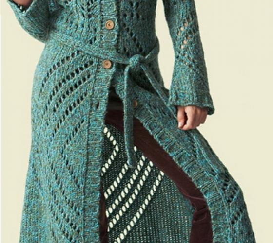 модные пальто вязаные спицами фото: