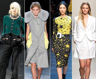 Комбинация холодных и теплых цветов дала необычайный эффект. Например, ярко-оранжевый пояс смориться сногсшибательно на классическом сером пальто. Поэтому не стоит бояться сочетать цвета, которые на первый взгляд покажутся немного неподходящими. Также в коллекциях неожиданно появился темно-синий цвет, который с успехом может заменить классический черный. Хорошо в женский гардероб впишутся и темно-синий костюм в стиле Marc Jacobs, и роскошное вечернее платье цвета ночного неба в стиле Oscar de la Renta.