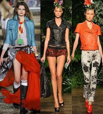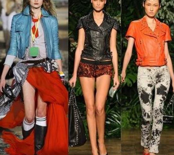 Самый горячий писк – кожаная куртка в байкерском стиле, изобилующая, как и положено, металлической фурнитурой, брутальными шипами и эффектными заклепками. Считаешь, черную «байкершу» банальной? Пожалуй, она немного приелась, поэтому подиумы предлагают яркие иногда пастельные (даже не верится!) цвета этих молодежных одежек – подбери к ним модный макияж!
