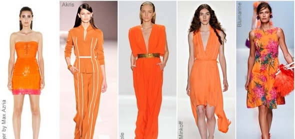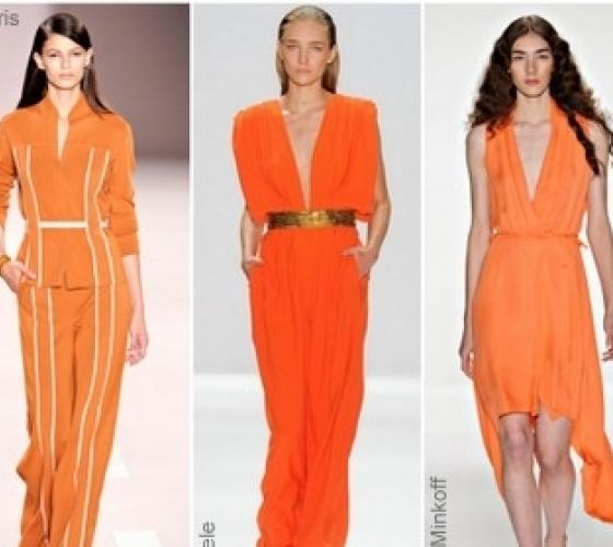 Это провокационный, насыщенный оранжевый цвет. Он непременно сделает ваш образ ярче, и будет прекрасным выбором для весны 2012.