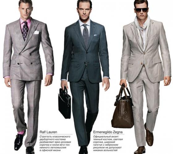 Обзор брендов мужских костюмов. Современный виды мужских костюмов и как их правильно подбирать. К слову, известный украинский модельер Александр Гапчук, уже достаточно давно и успешно предлагает свои услуги по разработке мужского стиля. Заявляя о себе — «Наша студия предлагает своим клиентам индивидуальность выраженную в подборе тканей от лучших мировых производителей, в правильной посадке на фигуру, в качестве пошива. Бережно сохраненные традиции ручного изготовления позволят не один год... |